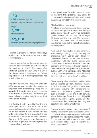 price rose by 2.3% to £273,011, while in East The median property selling time was 22 days, “East Lothian stood out as the star performer,