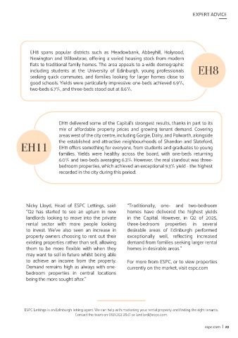 EH5 covers a diverse range of neighbourhoods, from the leafy, sought- Nicky Lloyd, Head of ESPC Lettings, said: “Traditionally, one- and two-bedroom