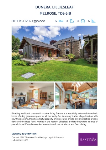 complemented by charming period features and further benefits include a private fields and the Moss Pond. Nestled in the heart of Lilliesleaf, it offers the perfect balance of