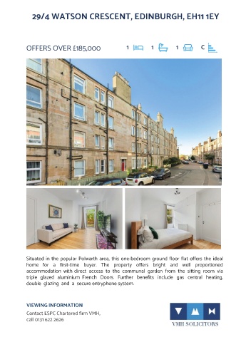 Located within a quiet modern development in the popular Liberton area, south of the City   Situated in the popular Polwarth area, this one-bedroom ground floor flat offers the ideal