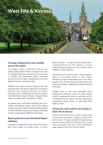 to £226,853. This performance reflects continued sold for an impressive 109.5% of Home Report day faster year-on-year. The picture across West Fife & Kinross is therefore