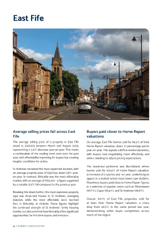 market, with an average of £195,250 - a figure supported Elsewhere, buyers paid close to Home Report figures in both St Andrews (down 12.5%) and Kirkcaldy (down 2.1 percentage points.