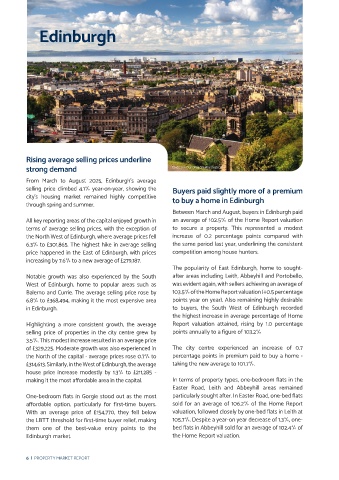 Balerno and Currie. The average selling price rose by 103.5% of the Home Report valuation (+0.5 percentage helped to strengthen confidence among both buyers available across the capital.