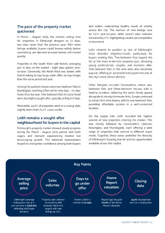 From March to August 2025, Edinburgh’s average Among the quickest movers were two-bedroom flats in bedroom flats and three-bedroom houses sold in