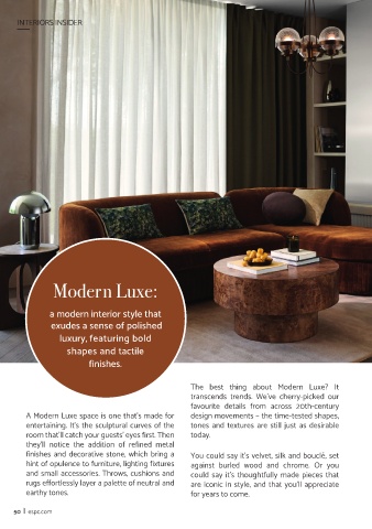 A Modern Luxe space is one that’s made for design movements – the time-tested shapes,