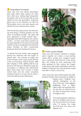 to refresh interiors for the year ahead. greenery. Dobbies’ Senior Plant Buyer, Claire also bringing a fresh, uplifting feel to your lilies and trailing ivy work particularly well