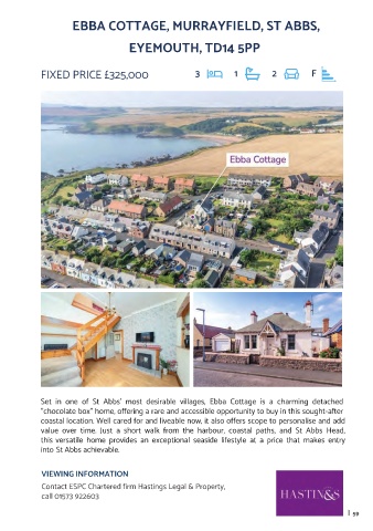 well proportioned accommodation complemented by quality fixtures and fittings. There is value over time. Just a short walk from the harbour, coastal paths, and St Abbs Head,