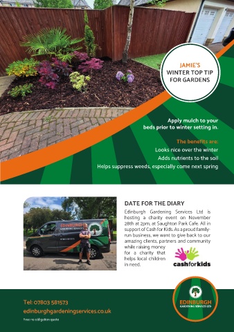 sensitive spaces. visit edinburghgardeningservices.co.uk or Helps suppress weeds, especially come next spring