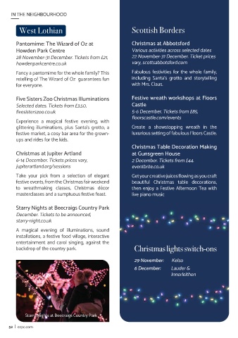 Five Sisters Zoo Christmas Illuminations Festive wreath workshops at Floors 7 December. Free, whatsonfife.co.uk A dazzling retelling of the classic tale, ideal for