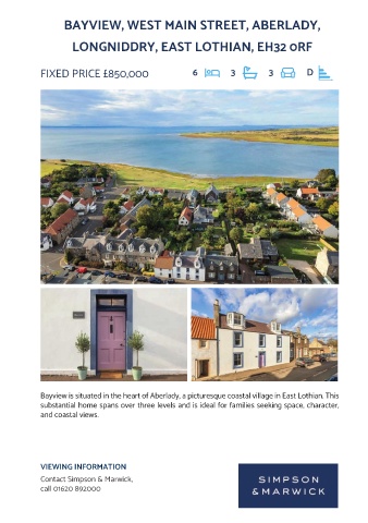 By appointment contact Simpson & Marwick Tel: 01620 892000