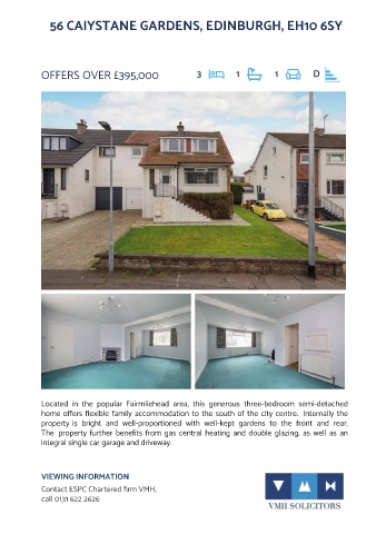 14 CAMMO WALK, CAMMO, EH4 8AN 56 CAIYSTANE GARDENS, EDINBURGH, EH10 6SY