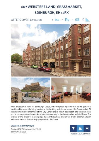 buyers seeking contemporary living with timeless appeal. Finished to an exceptional standard shops, restaurants and amenities are on the doorstep in the Grassmarket and Old Town. The